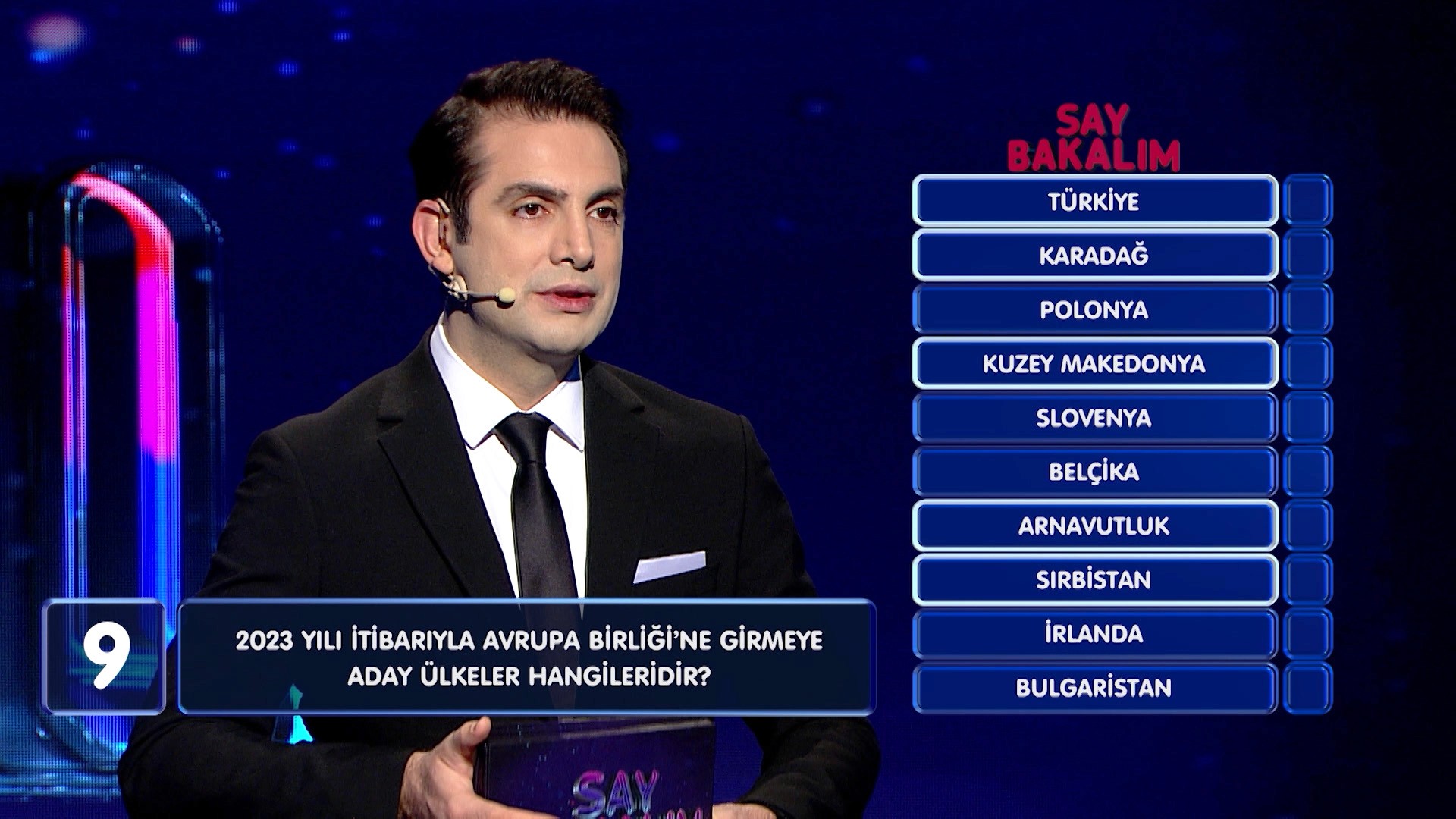 Say Bakalım is a quiz show broadcast on TRT Türk, bringing together knowledge and entertainment in a lively television format. Directed by me, the program combines a dynamic screen language, fast-paced flow, and an engaging atmosphere to turn the quiz show format into an energetic viewing experience.The first season was hosted by Mennan Şahin, while the second season was hosted by Mehmet Çelikyay. As contestants put their knowledge, focus, and speed to the test, Say Bakalım stands out not only as a competition based on correct answers, but also as an entertaining and accessible television program.